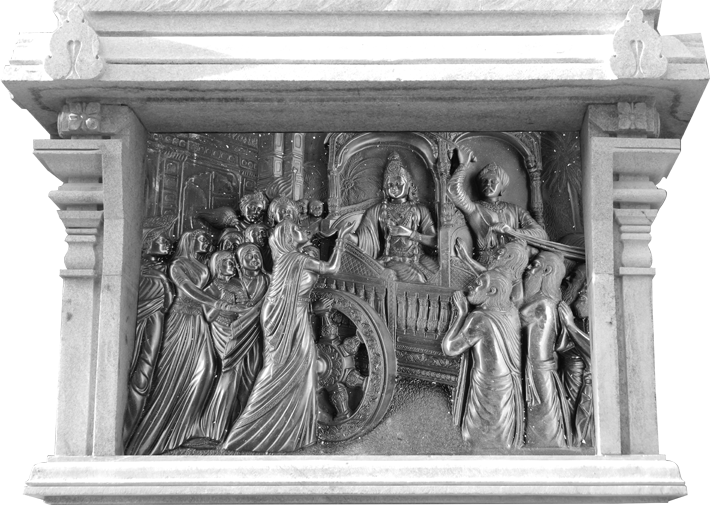 As you enter, you are welcomed by 28 beautifully carved black marble pillars, each depicting one of Krishna’s divine relationships (Rasas) with His devotees: